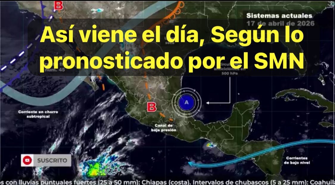 México,17 abril 2026.-Este día, el nuevo frente frío (número 45) asociado con una vaguada en niveles medios y altos de la atmósfera, ingresará al noroeste de la República Mexicana; mientras que una línea seca se mantendrá sobre el noreste del país.