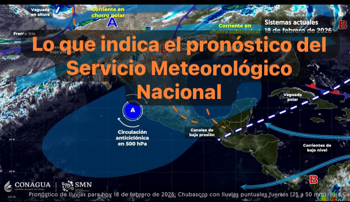 México,18 feb. 2026.-Este día, el frente frío número 35 se extenderá sobre el norte del país, mientras que un nuevo frente frío ingresará al noroeste de la República Mexicana; ambos sistemas interaccionarán con una vaguada polar y con las corrientes en chorro polar y subtropical, generando vientos fuertes a muy fuertes y descenso de temperatura en las regiones antes mencionadas; así como lluvias aisladas en Baja California Sur y Sonora, además de lluvias puntuales fuertes en Baja California.