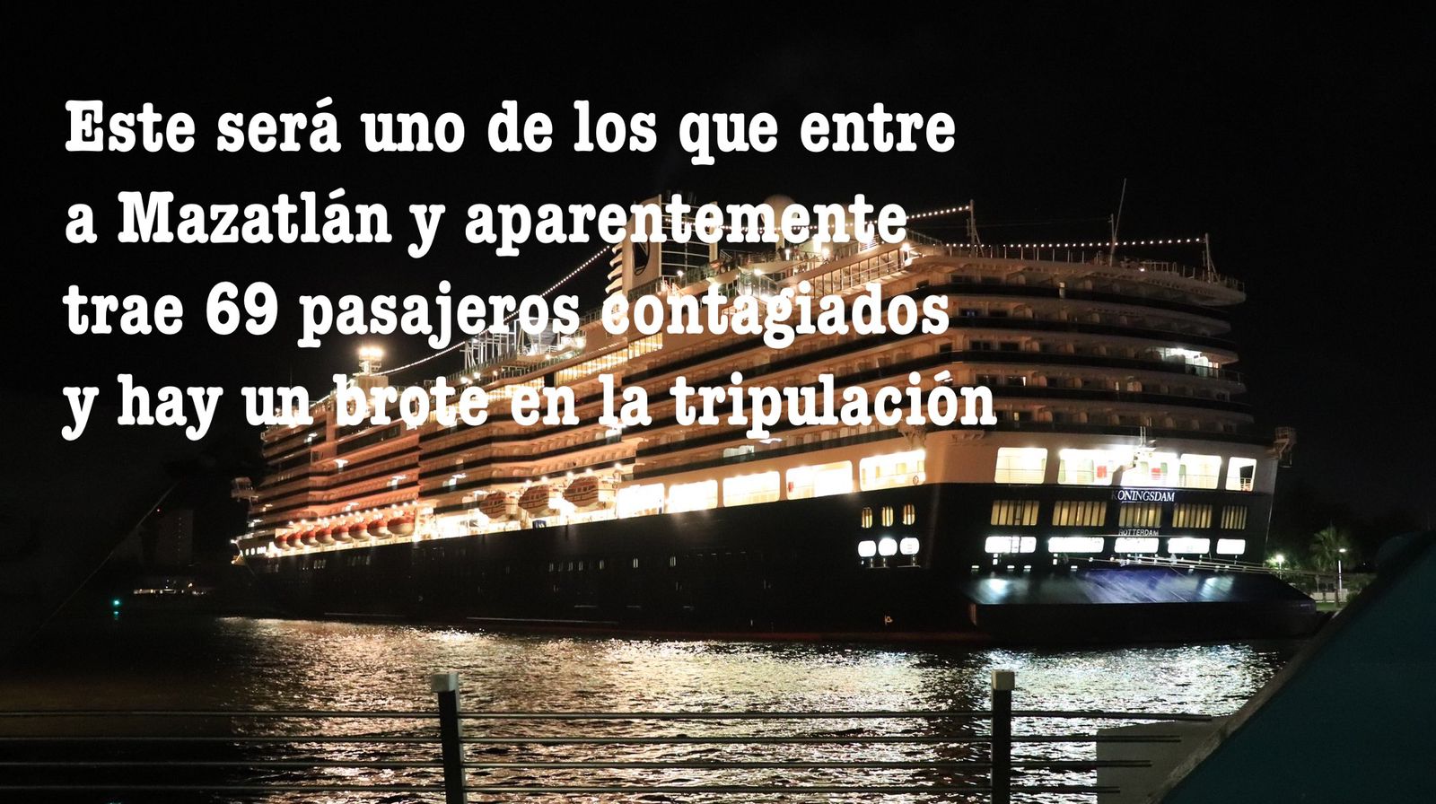 Rosario Torres confirmó que este miércoles 29 de diciembre, autoridades de las secretarías de Salud realizarán pruebas aleatorias para detectar el COVID en los pasajeros que arriben al muelle turístico de Mazatlán a bordo de los cruceros Jewel de la línea Norwegian Cruise y Koenigsdam de la Holland America.