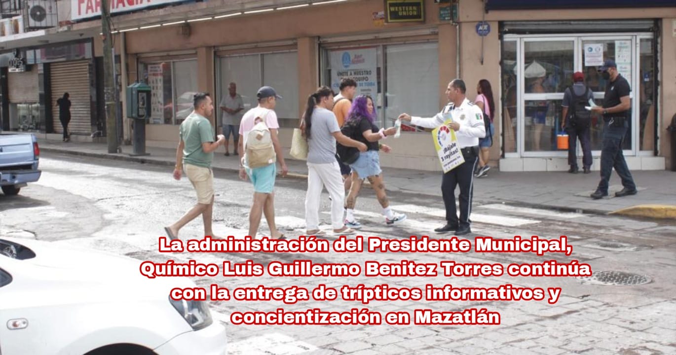 A unos días de que se celebre el “Día Internacional del Peatón”, la administración municipal que encabeza el Presidente Municipal, Químico Luis Guillermo Benitez Torres continúa con la entrega de trípticos informativos y concientización.