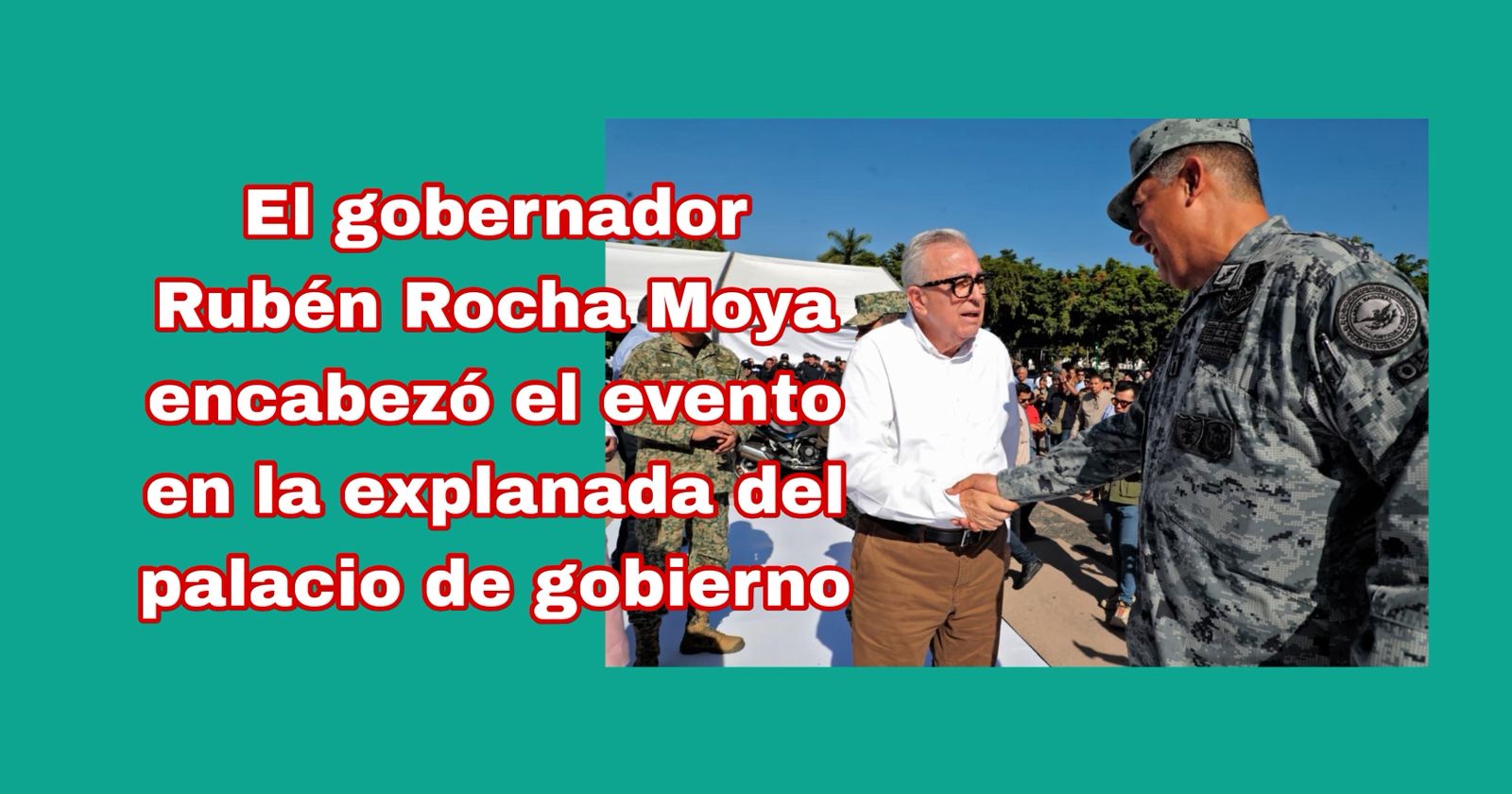 Acompañaron al Gobernador Rocha, Santos Gerardo Soto, comandante de la Novena Zona Militar, Julices Julián González, coordinador estatal de la Guardia Nacional; Yeraldine Bonilla Valverde, secretaria General de Gobierno; Juan de Dios Gámez, alcalde de Culiacán; Óscar Rentería Schazarino, secretario de Seguridad Pública; Víctor Luis Soto, Fiscal estatal de la Fiscalía General de la República; Efrén Ortega Espinoza, de la Cuarta Región Naval; Claudia Zulema Sánchez, Fiscal General del Estado, así como cadetes de la Universidad del Policía y elementos de las distintas corporaciones de seguridad.
