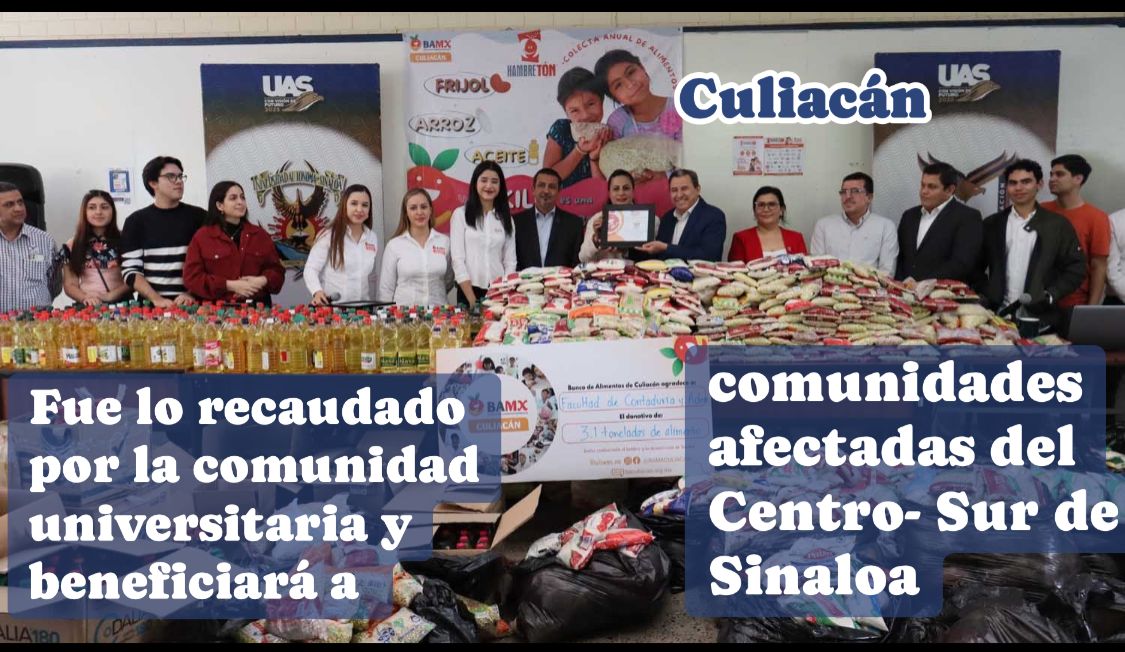 “Vamos a estar beneficiando a más de 12 mil personas con este donativo, personas de la zona Centro-Sur que es el área de incidencia que tiene Banco de Alimentos de Culiacán. No solamente reconocer la donación del día de hoy que hacen, sino ese espíritu de generosidad que hay dentro de la facultad, dentro de la universidad, esos valores que fomentan a través de estas colectas para ayudar a una noble causa”, manifestó.