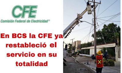 México, 24 de octubre de 2023.- CFE RESTABLECE A LA NORMALIDAD EL SUMINISTRO ELÉCTRICO EN BAJA CALIFORNIA SUR TRAS EL PASO DEL HURACÁN ‘NORMA’; EN SINALOA...