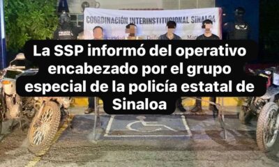 Navolato, Sin.,11 oct. 2025.-Detuvieron a cuatro civiles armados y aseguraron tres motocicletas en Navolato. Este resultado se derivó de trabajos preventivos por parte de policías del...
