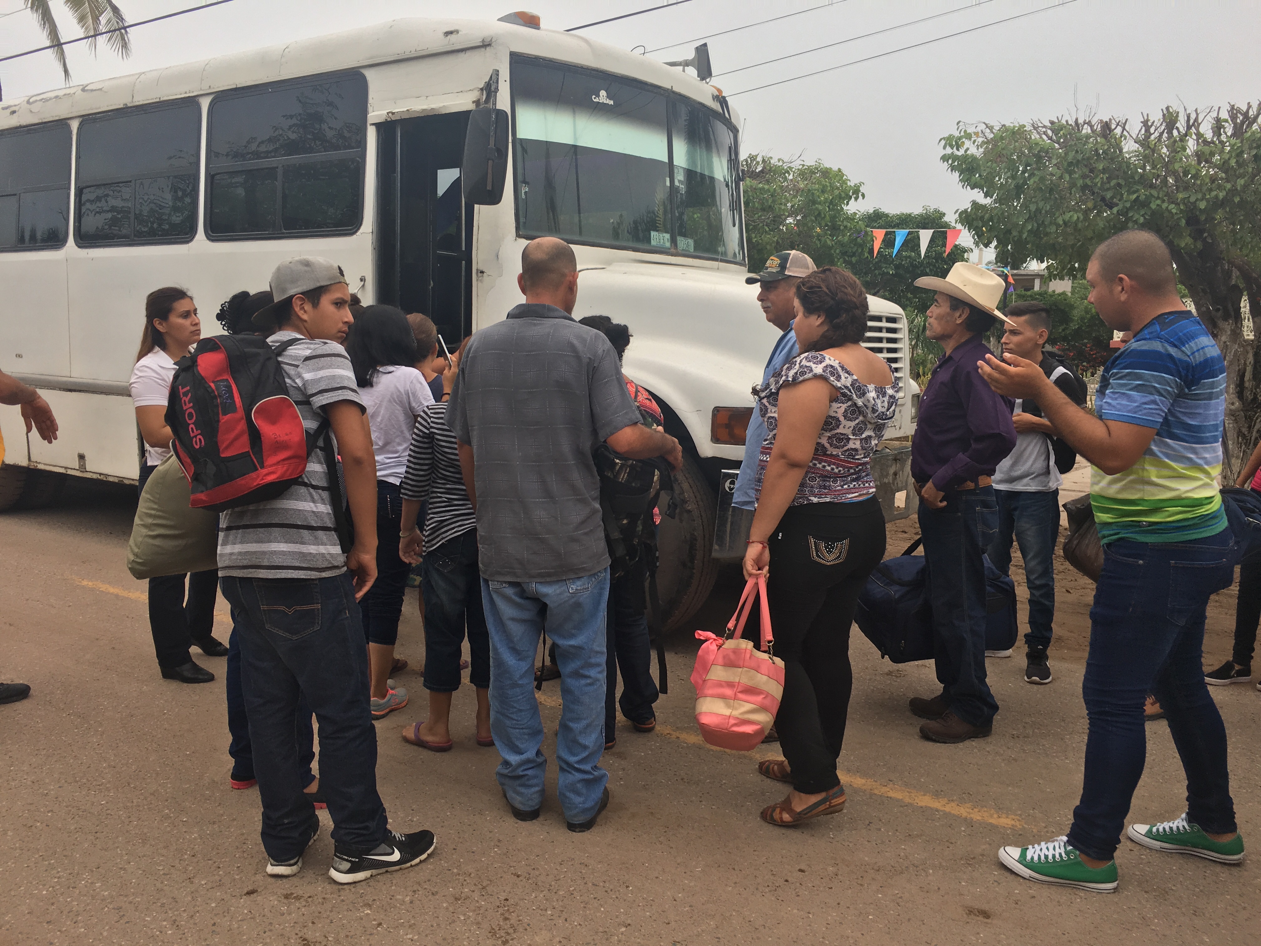 Este sitio ya es desalojado por las autoridades; son cientos de familias que bordan camiones para ser llevados a un albergue.