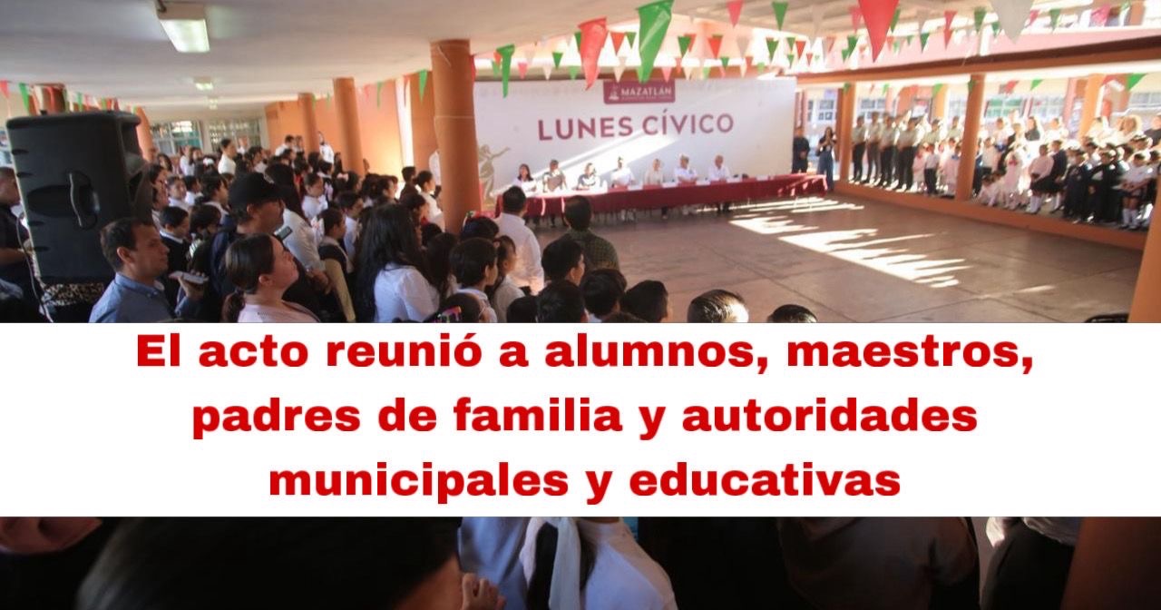 En su mensaje, Palacios Domínguez destacó que el plantel forma parte de la Nueva Escuela Mexicana, un modelo que impulsa la enseñanza con valores, respeto y el orgullo de ser mexicanos. “Quiero felicitarles porque cada Lunes Cívico, como este, ustedes demuestran que amar a México no solamente es respetar nuestros símbolos: también es portarse bien, ayudar a los demás, respetar a sus compañeros y estudiar con muchas ganas. Esas pequeñas acciones, niñas y niños, es lo que los hace ser mejores mexicanas y mexicanos, pero sobre todo el respeto hacia los demás. Todo eso nos ayuda a forjar lo que nosotros llamamos una nueva cultura de paz para este Mazatlán que amamos”, expresó.