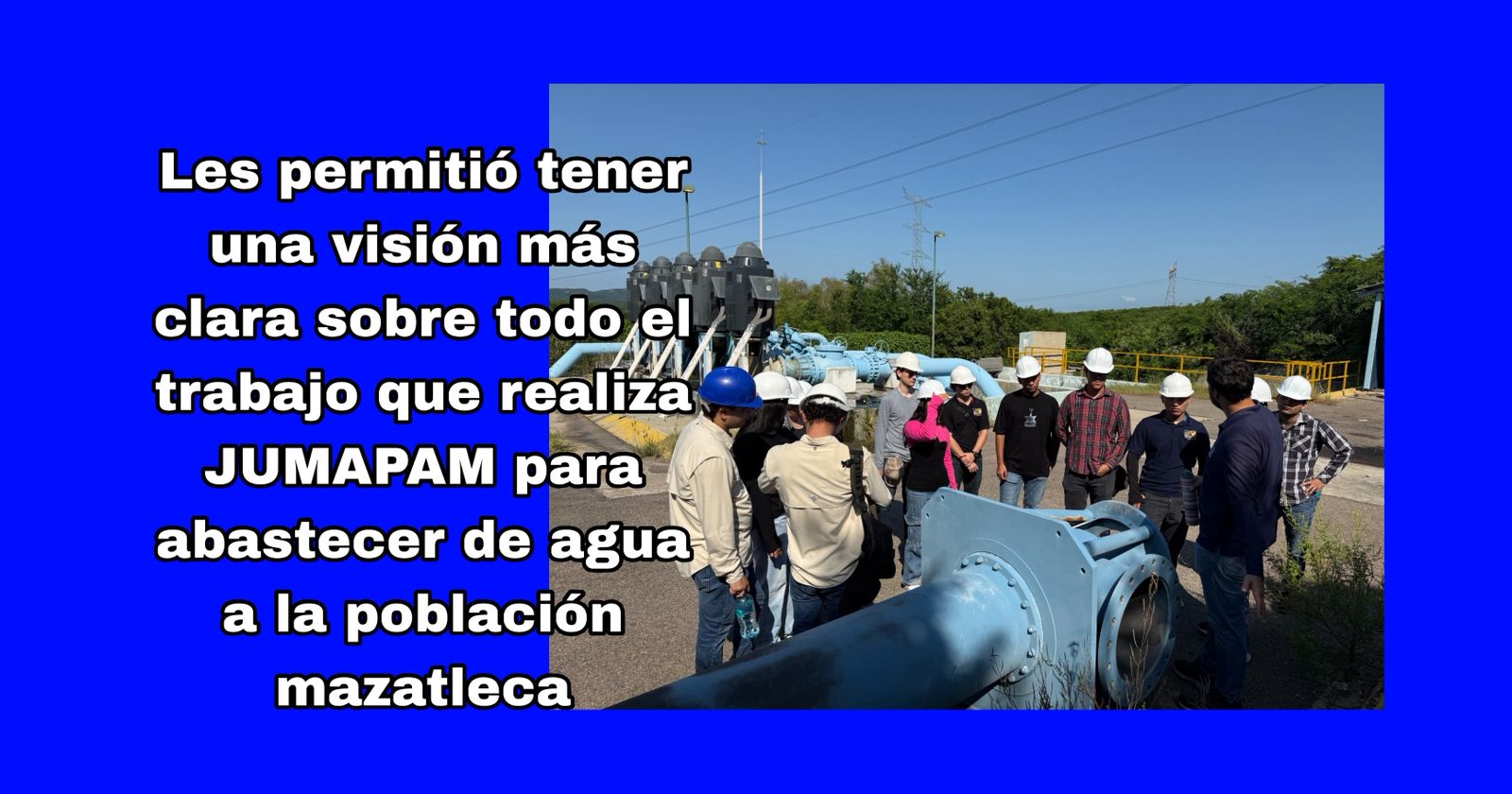 Cabe señalar que esta visita guiada a la planta fue coordinada a través del Departamento de Cultura del Agua, perteneciente a la Gerencia General de JUMAPAM, ya que además de apoyar la formación integral de los futuros profesionistas, el organismo operador busca que las nuevas generaciones conozcan cómo funciona el ciclo urbano del agua y sean usuarios más conscientes de todo el despliegue de recursos que el Gobierno de Mazatlán debe hacer todos los días, para que los habitantes de Mazatlán tengan acceso al agua potable.