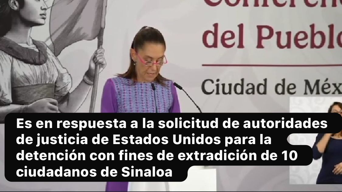 México, 30 abril 2026.- En respuesta a la solicitud de autoridades de justicia de Estados Unidos para la detención con fines de extradición de 10 ciudadanos mexicanos, entre ellos el gobernador de Sinaloa, Rubén Rocha Moya, la presidenta de la República, Claudia Sheinbaum Pardo fijó la postura de su gobierno al respecto, argumentado que dicha solicitud es infundada, al carecer de pruebas, y consideró que esta petición obedece a un sentido eminentemente político.