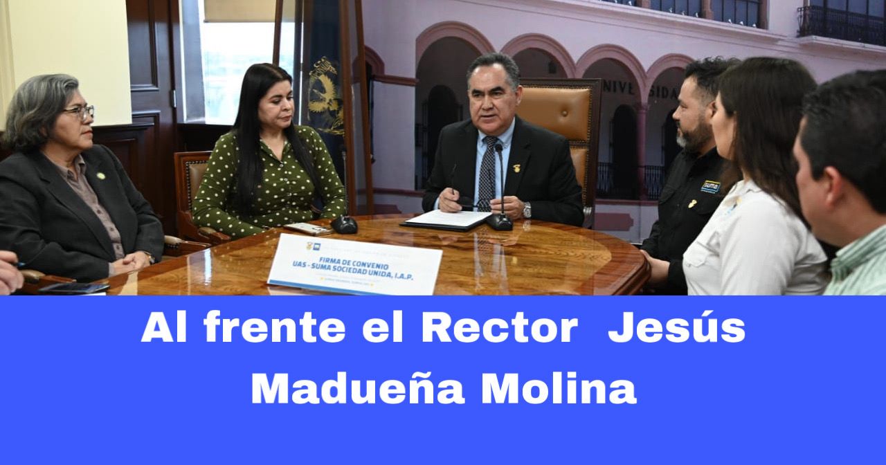 Culiacán,Sin., 21 agosto 2025,.La Universidad Autónoma de Sinaloa firmó un Convenio General de Colaboración con SUMA Sociedad Unida, I.A.P., a fin de fortalecer la hermandad entre ambas instituciones y ampliar sus horizontes en torno a n, el cultivo de los valores y la promoción de la cultura de la paz como fundamentos imprescindibles para el desarrollo de la comunidad universitaria y de la sociedad en general.