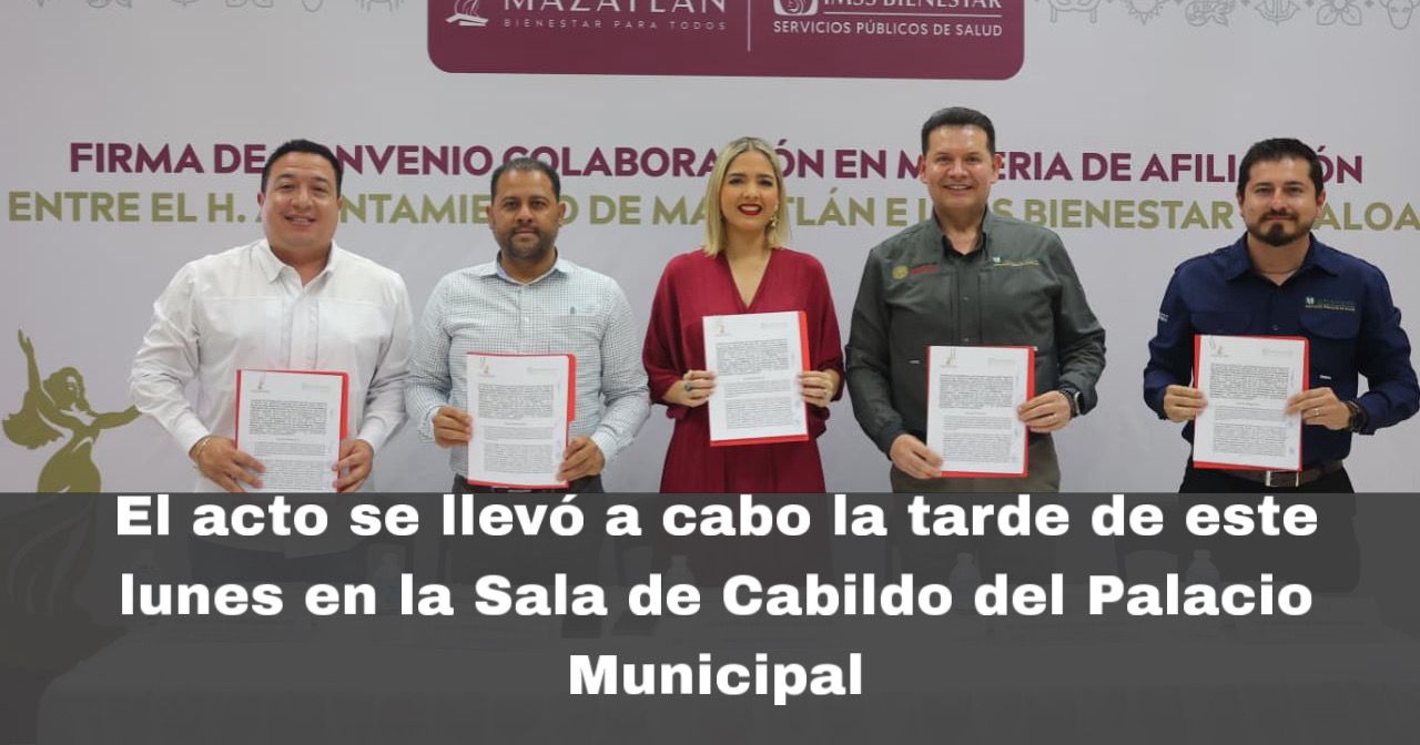 Mazatlán, Sin., 29 sept. 2025.– En un paso firme hacia la consolidación de un sistema de salud más inclusivo y universal, la Presidenta Municipal de Mazatlán, Estrella Palacios Domínguez, encabezó la firma de un convenio de colaboración con el Coordinador Estatal de IMSS Bienestar en Sinaloa, Julio César Quintero Ledezma. El acto se llevó a cabo la tarde de este lunes en la Sala de Cabildo del Palacio Municipal.