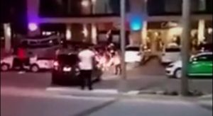 Los rijosos se van a la calle y parecía que ahí terminaba el problema. Pero instantes después; uno de ellos se sube a un vehículo escuro, da vuelva en la avenida y lo echa encima de los que estaban en ese lugar; después se da a la fuga.