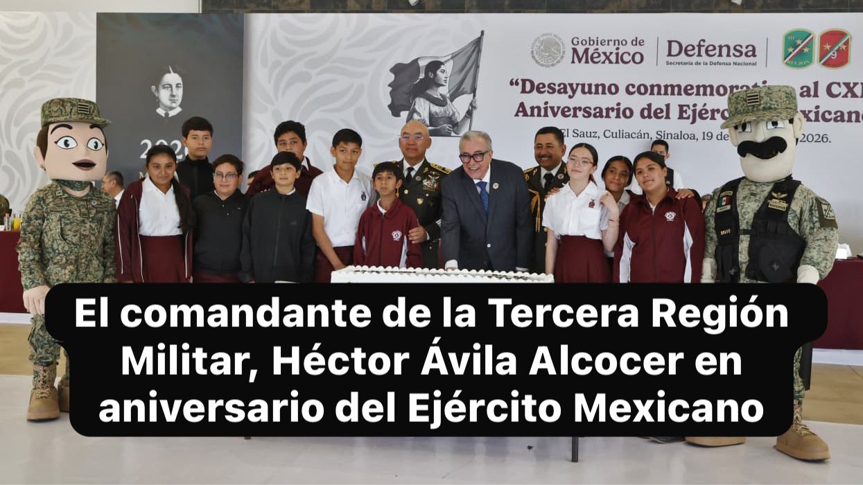 Culiacán, Sin.,19 feb.2026.- Conmemorando el CXIII aniversario del Ejército Mexicano, el Gobernador Rubén Rocha Moya, como invitado de honor, acompañó al comandante de la Tercera Región Militar Héctor Ávila Alcocer y al comandante de la Novena Zona Militar, Santos Gerardo Soto, así como personal castrense y de tropa, donde destacó su valiosa contribución en beneficio de la sociedad sinaloense.