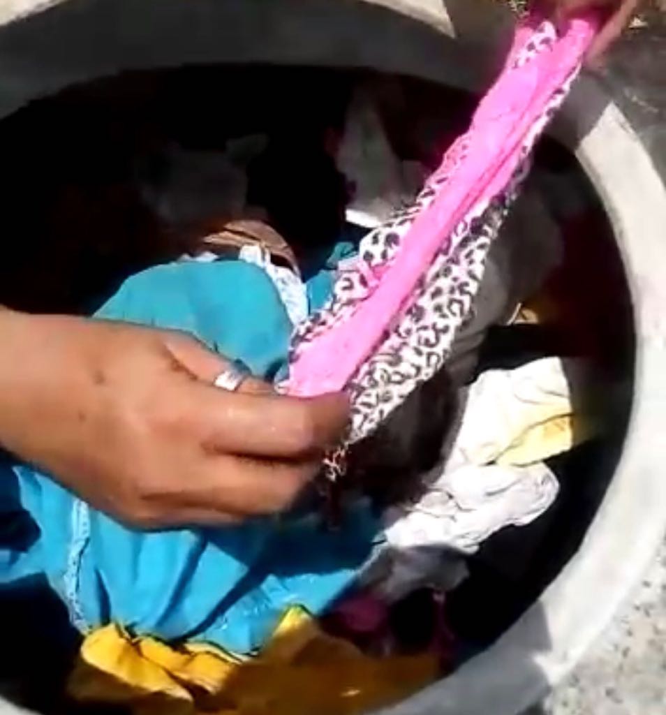 Tangas, calzones y todo tipo de prenda intima femenina fue encontrada por las autoridades dentro de un tanque de lavadora en un domicilio de la sindicatura de La Noria, en la zona rural de Mazatlán.