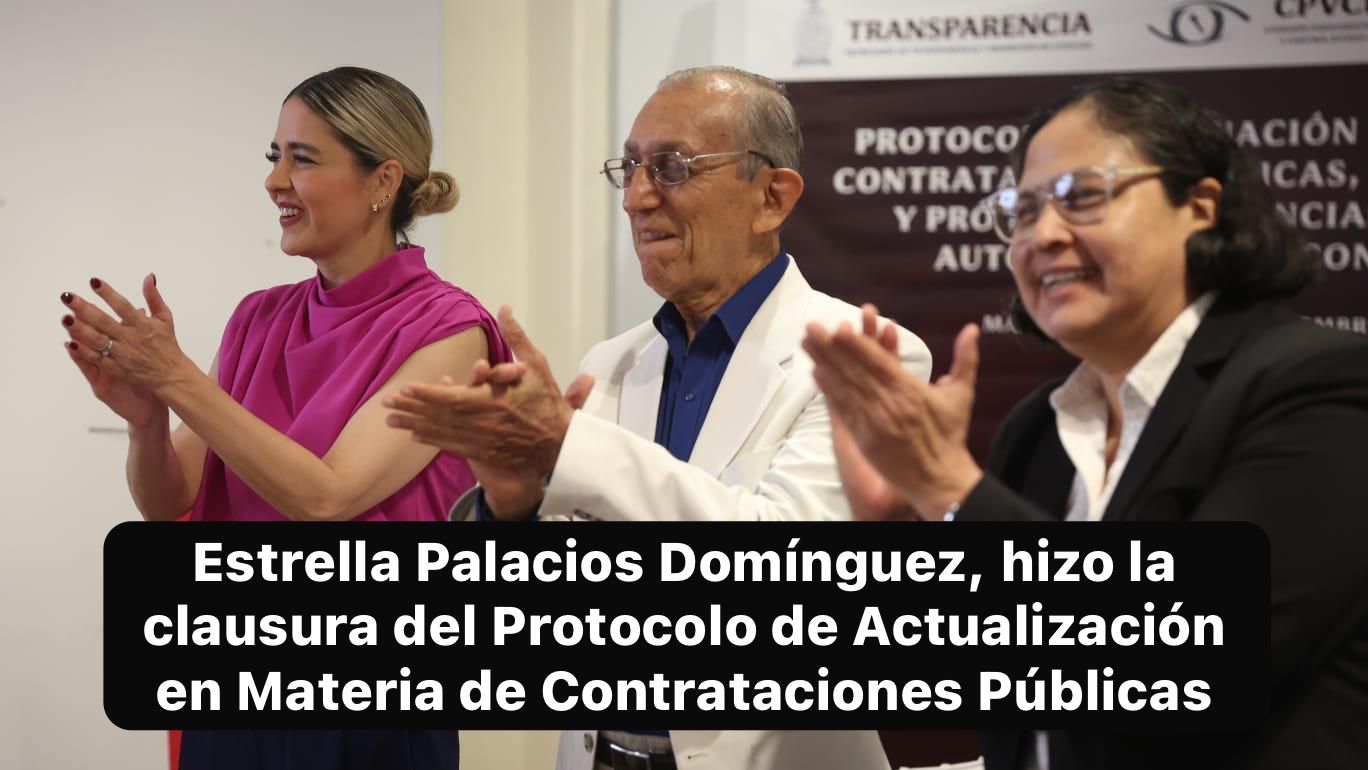 Mazatlán, Sin.,28 nov. 2025.- Los gobiernos transformadores están demostrando que gobernar con honestidad sí es posible en México, en Sinaloa y en Mazatlán, puntualizó la Presidenta Municipal, Estrella Palacios Domínguez, durante la clausura del Protocolo de Actualización en Materia de Contrataciones Públicas, Otorgamiento y Prórroga de Licencias, Permisos, Autorizaciones y Concesiones, realizado en el Teatro Ángela Peralta (TAP).