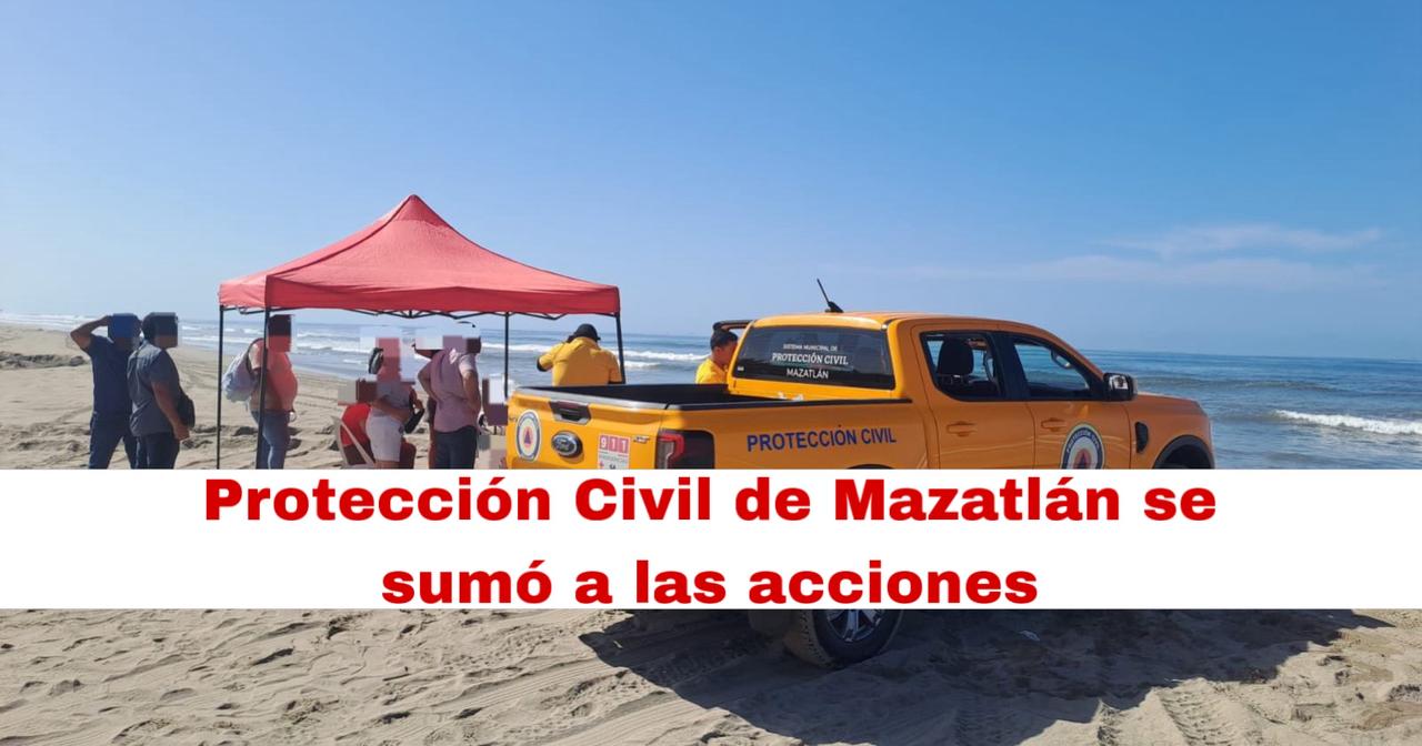 Mazatlán, Sin., 6 abril 2026.-La Coordinación Municipal de Protección Civil se suma a las labores del operativo de búsqueda y rescate del joven en las playas de la Isla de la Piedra, mediante el despliegue de un total de 10 elementos, apoyados con tres patrullas, una cuatrimoto, una embarcación y un helicóptero.