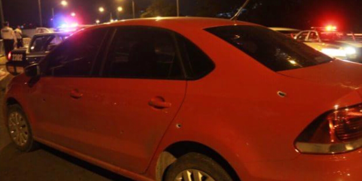 El automóvil Uber presentó varios impactos de bala en la carrocería del lado izquierdo.