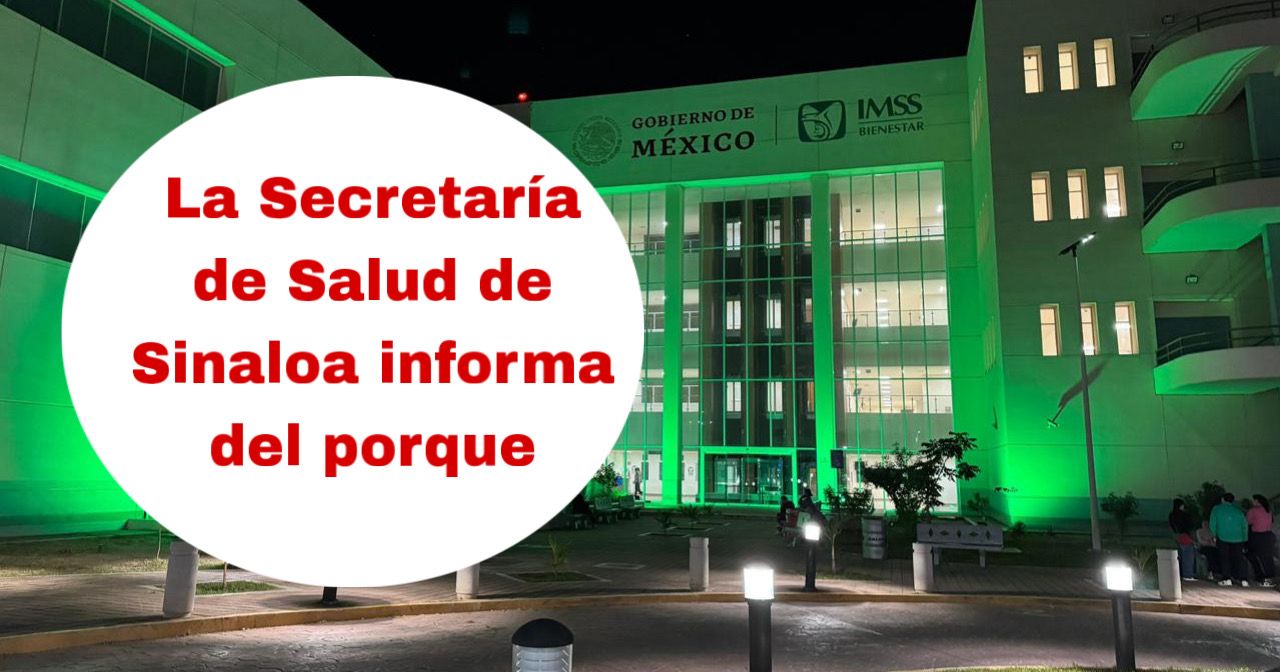 Culiacán,Sin., 28 nov. 2025.-El Hospital General IMSS Bienestar de Culiacán se iluminó de color verde, un color que simboliza la donación de órganos y tejidos, pues representa la esperanza y la vida que se renueva a través de este acto.
