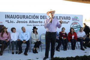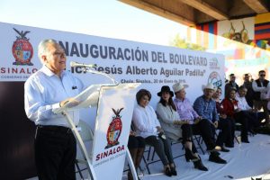 Por su parte, el exgobernador Jesús Alberto Aguilar Padilla, quien estuvo acompañado de su esposa Rosy Camacho, así como de alcaldes y excolaboradores de su administración, agradeció tan alta distinción, por ponerle su nombre a la vialidad más importante de Choix.