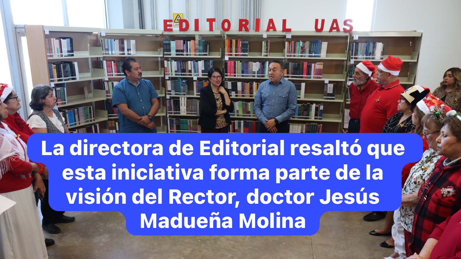 Culiacán,Sin.,15 dic. 2025.-Más de mil 500 libros publicados bajo el sello editorial de la casa Rosalina forman parte ya de la Biblioteca Pública Estatal Gilberto Owen, al inaugurarse la “Colección Bibliográfica Universidad Autónoma de Sinaloa”, espacio que representa un logro significativo en la difusión del conocimiento producido por la comunidad universitaria y de autores nacionales e internacionales que son parte del catálogo de la UAS, destacó la doctora Azucena Manjarrez Bastidas.