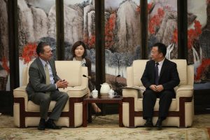 Posteriormente, el gobernador se reunió con el Vice Presidente de la Federación de Industria y Comercio de Shanghai, Wang Jiang Ming.