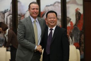Shanghai, China; a 15 de mayo de 2018.- En lo que fue la primera jornada de la misión comercial que encabeza por China, el gobernador Quirino Ordaz Coppel se reunió en Shanghai con miembros de la Federación de Industria y Comercio, ante quienes expuso las potencialidades que ofrece la entidad en sectores como la pesca, el turismo, el campo y su posición estratégica con dos puertos para el intercambio comercial.