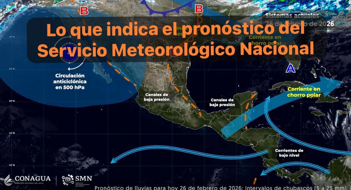 México, 26 feb. 2026.- Este día, una circulación anticiclónica en niveles medios y altos de la atmósfera sobre el noroeste y norte del país, mantendrá tiempo estable y ambiente caluroso a muy caluroso en dichas regiones; así como ambiente cálido a caluroso en el resto del territorio nacional; sin embargo, prevalecerá ambiente frío a muy frío durante la mañana y noche sobre los estados de la Mesa del Norte y Mesa Central.