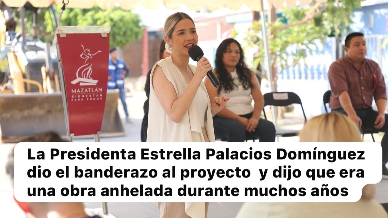 Mazatlán, Sin., 29 abril 2025.- En su propósito de lograr que el bienestar llegue a todos los rincones del municipio, la Presidenta Estrella Palacios Domínguez dio el banderazo de inicio al proyecto de pavimentación de la calle Ciudad del Maíz, en el fraccionamiento San Jorge, una obra anhelada durante muchos años por sus habitantes y que forma parte del paquete de 137 obras de infraestructura urbana y de servicios.