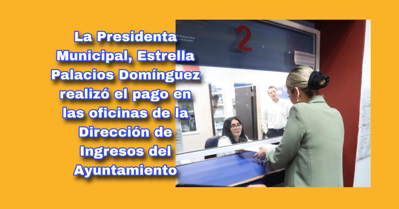 La Presidenta Municipal, Estrella Palacios Domínguez realizó el pago de su Impuesto Predial en las oficinas de la Dirección de Ingresos del Ayuntamiento, e invitó a la población a aprovechar las promociones vigentes y a cumplir con sus obligaciones fiscales desde el inicio del año, contribuyendo así al bienestar de la ciudad.
