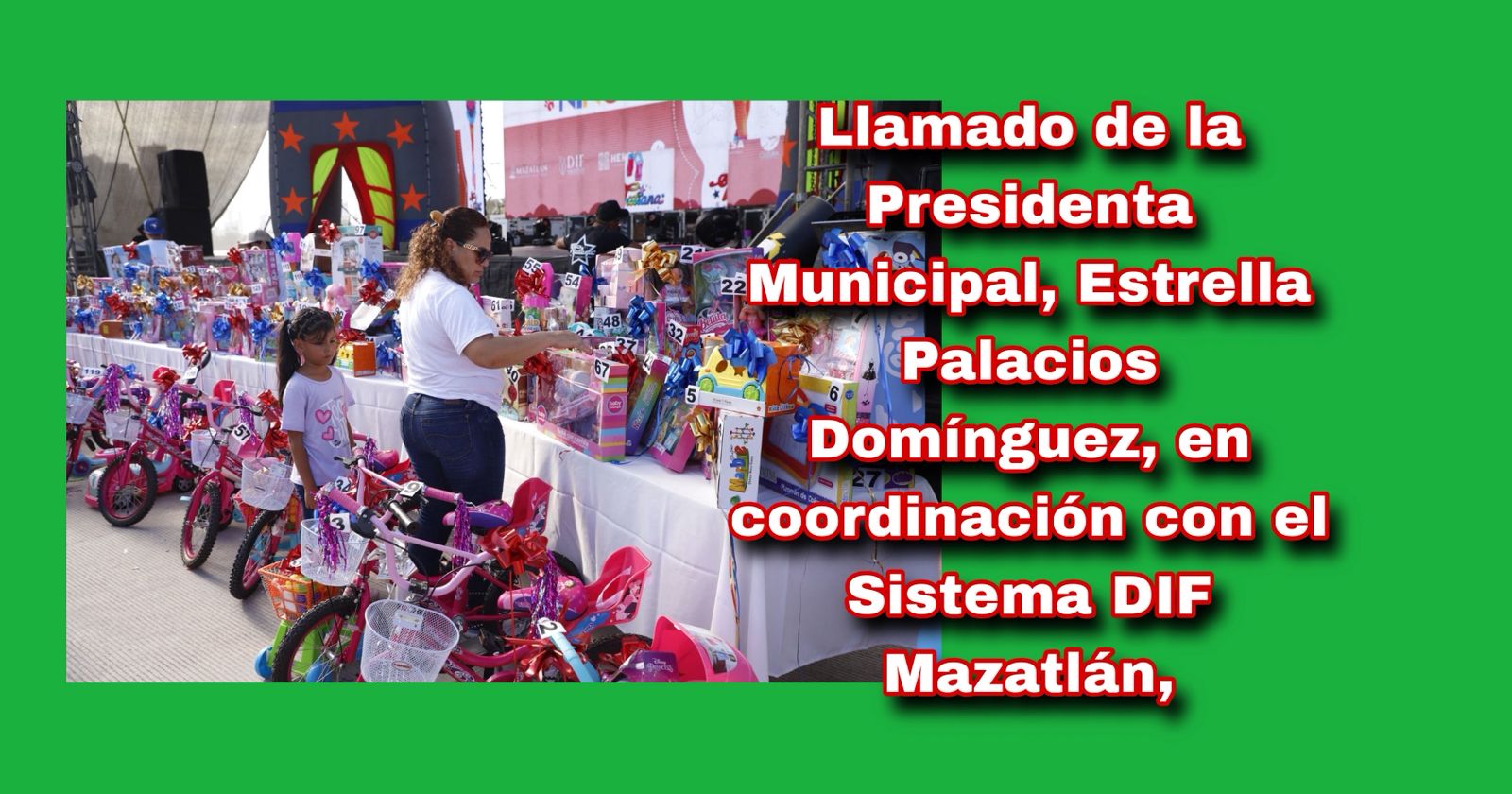 Mazatlán, Sin., 25 abril 2026.- La Presidenta Municipal, Estrella Palacios Domínguez, en coordinación con el Sistema DIF Mazatlán, invita a las familias mazatlecas a disfrutar de los festejos del Día del Niño 2026, una celebración pensada para brindar alegría, diversión y momentos inolvidables a la niñez del municipio.