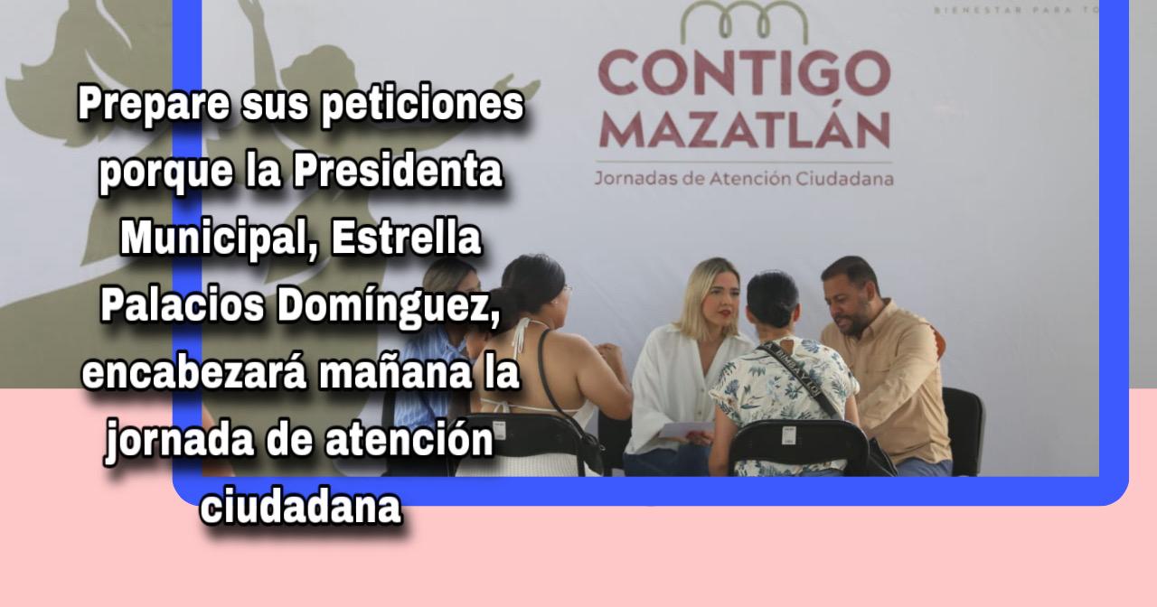 Mazatlán, Sin., 22 sept. 2025.- Como parte de su compromiso con una administración cercana y sensible a las necesidades de la gente, la Presidenta Municipal, Estrella Palacios Domínguez, encabezará junto con su Gabinete del Bienestar la jornada de atención ciudadana “Contigo Mazatlán” en la colonia Lázaro Cárdenas.