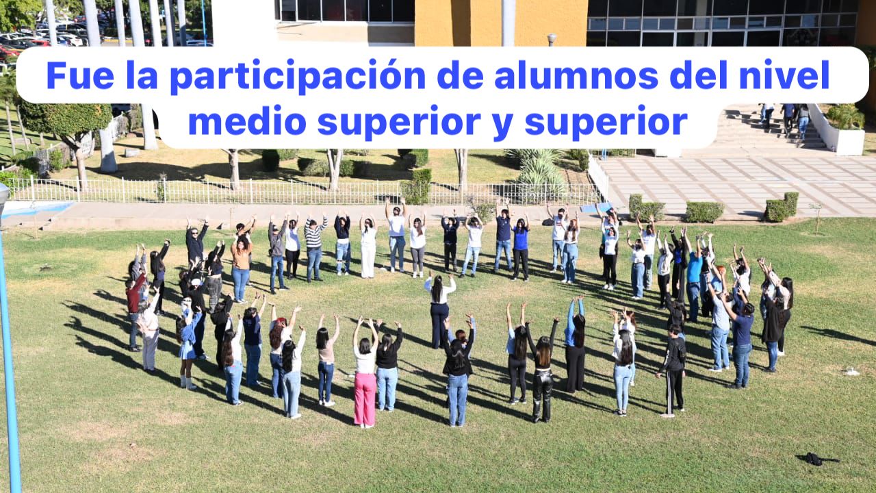 Culiacán,Sin.,26 nov. 2025.-Con la participación de alumnos del nivel medio superior y superior en la formación de la letra de tamaño monumental asignada y una paloma, la Universidad Autónoma de Sinaloa, a través de la Unidad de Bienestar Universitario (UBU), se sumó al Mosaico Nacional por la Paz y Contra las Adicciones.