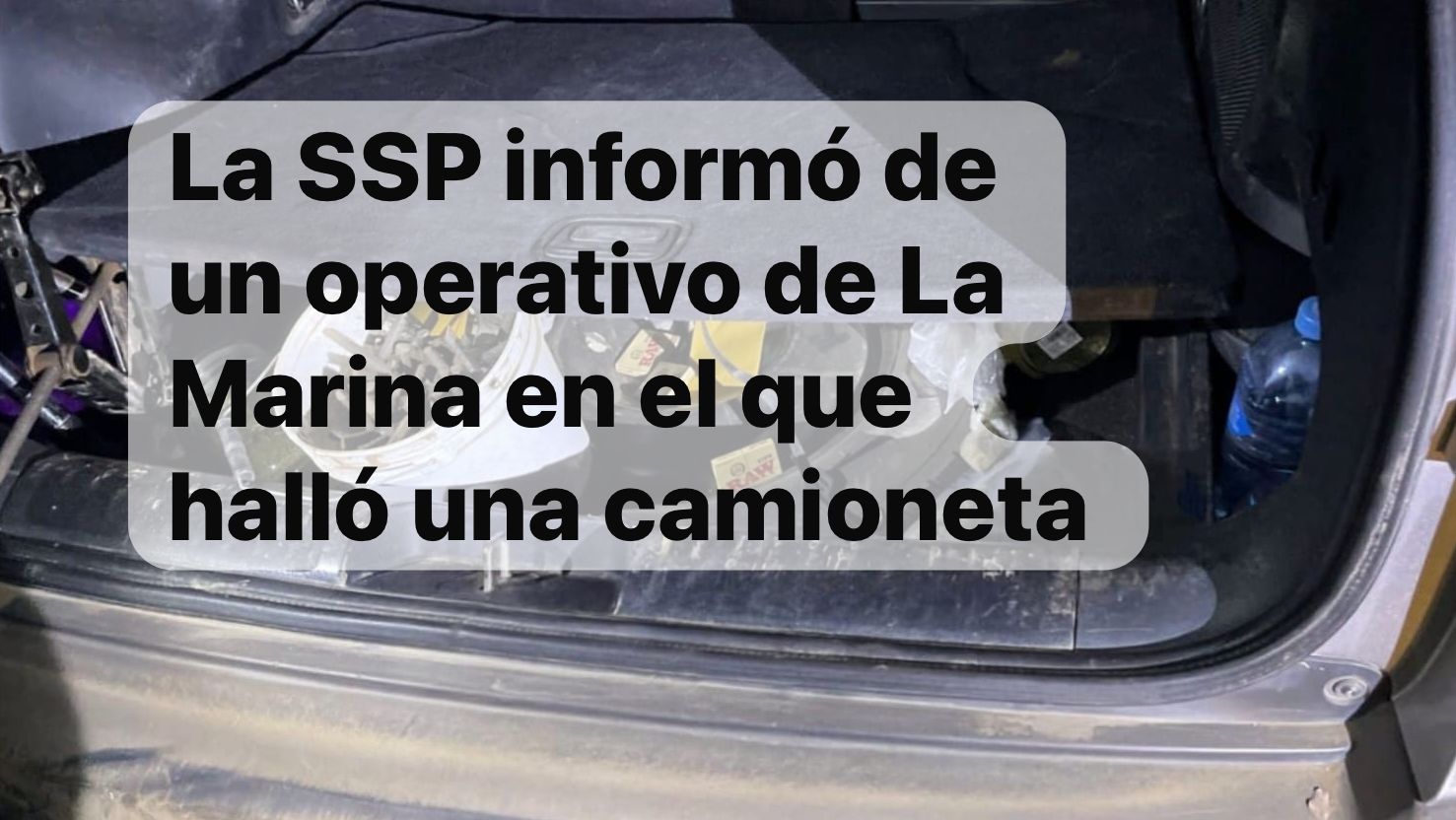 En recorridos terrestres por el municipio de Navolato, el personal naval visualizó una camioneta, marca Jeep, línea Cherokee, estacionada a un lado de la carretera que conduce de la sindicatura de Villa Ángel Flores, La Palma, a El Castillo. No tenía tripulantes. Al revisarla, se detectó que la unidad cuenta con un reporte de robo vigente y, en su interior, se localizó lo siguiente: