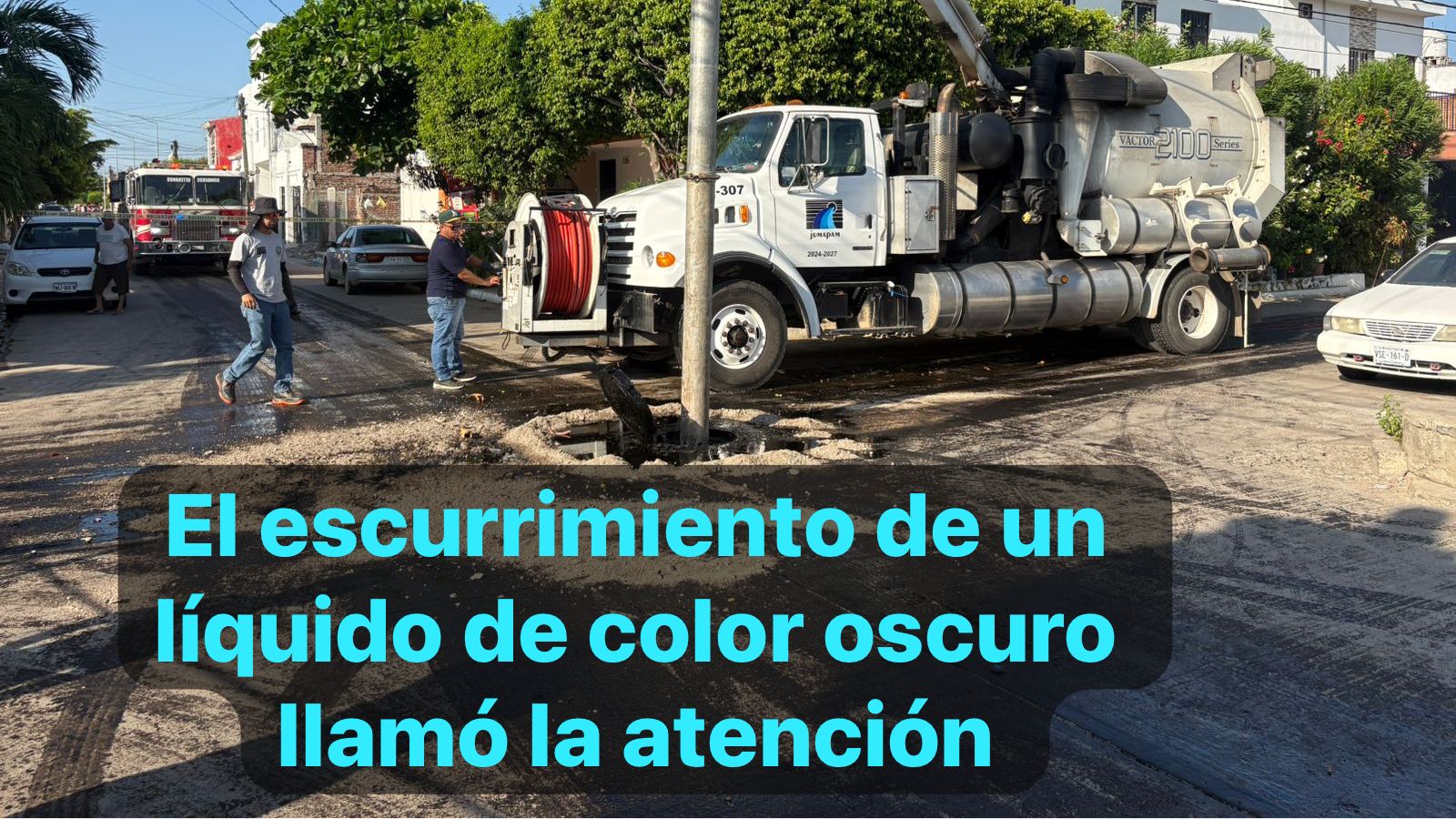 Mazatlán, Sin.,26 oct. 2025.- El escurrimiento de un líquido de color oscuro y viscoso, que emergía de uno de los pozos de visita de la red sanitaria en las inmediaciones de la Colonia Francisco Villa, alertó a los vecinos de este asentamiento, quienes de inmediato llamaron a los números de emergencia para que investigaran sobre este suceso.
