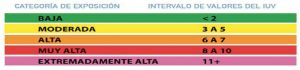 El IUV —expuso Urbina Vidales—indica la posibilidad de que se produzcan efectos nocivos sobre la salud y estimula a las personas a protegerse y, así, cuanto más alto es el valor de IUV, mayores son las posibilidades de que la piel y los ojos resulten lesionados y menor es el tiempo necesario para que se produzca una lesión.