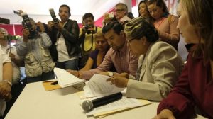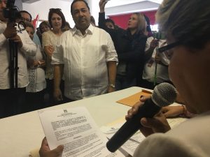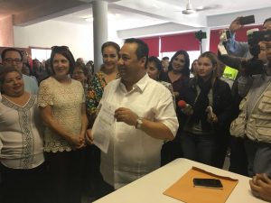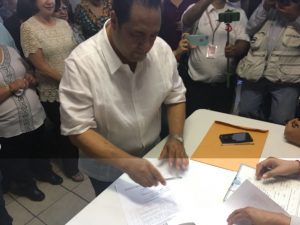 Cuando termino de saludar entregó la documentación marcada en la convocatoria. Minutos después, María de Jesús Vázquez Quiñonez, presidenta del Órgano Auxiliar de la Comisión Estatal de Procesos Internos manifestó que “hasta este momento el único que se ha registrado es Fernando Pucheta Sánchez”. Y asentó que había cumplido con todos los requisitos.