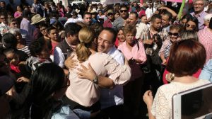 Pero acercarse hasta ellos no fue tan rápido. Al entrar al recinto encontró que también estaba abarrotado y fue recibido a una sola voz cuando al mismo tiempo corearon su nombre tan fuerte como pudieron.