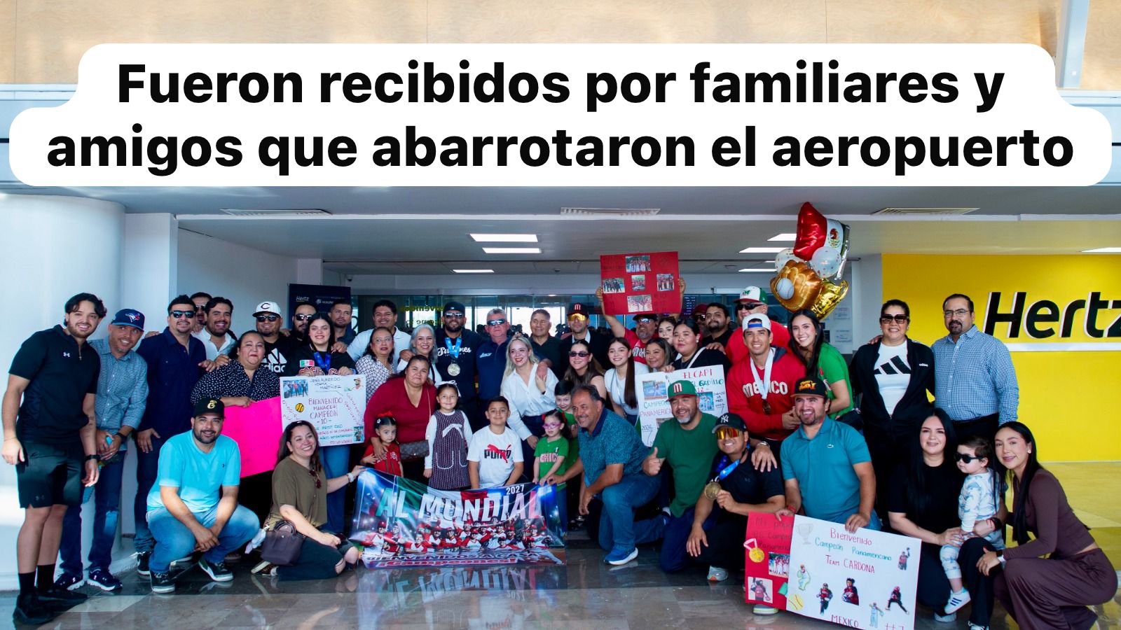 Culiacán, Sin., 2 marzo 2026.- Los cinco deportistas sinaloenses que forman parte de la selección nacional de Softbol que recientemente se coronaron como Campeones Panamericanos, arribaron está mañana a la capital sinaloense siendo recibidos por familiares y amigos que abarrotaron el aeropuerto internacional de Culiacán.