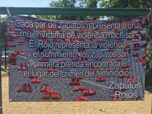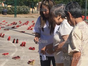 Fue con cientos de zapatos rojos colocados en la cancha deportiva, por la Asociación de Mujeres de Estudios de Género en Educación y la artista plástica Elina Chauvet.