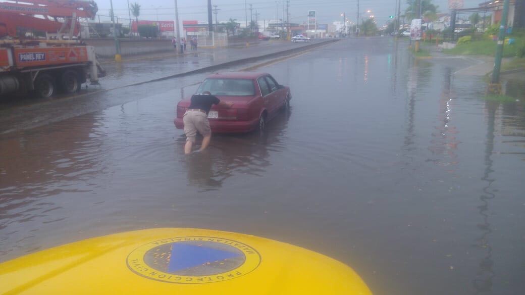 En La Marina, cerca de Rafael Buelna ocurrió lo mismo y un automóvil se quedó, por lo que tuvo que ser ayudado a salir.