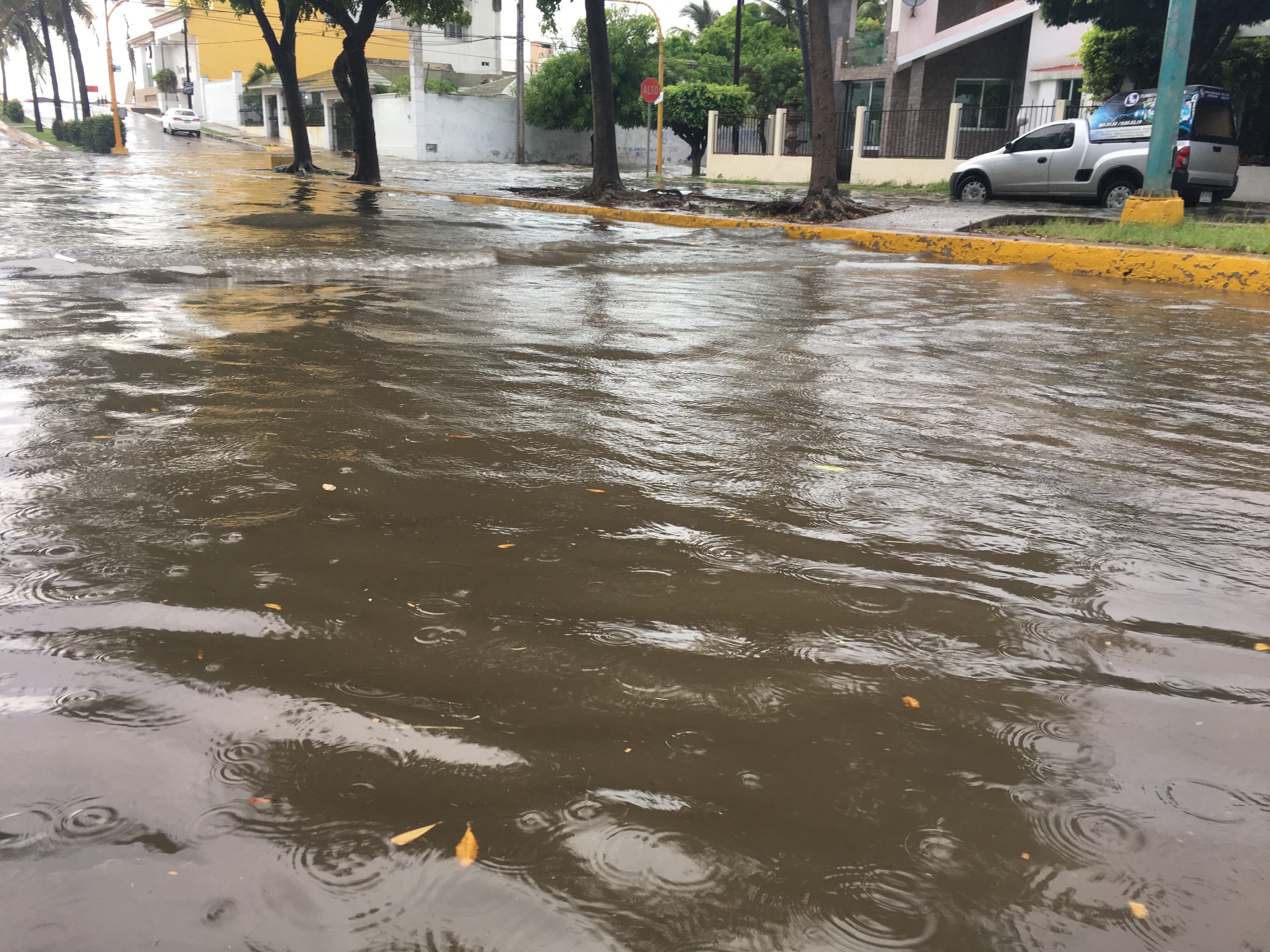 La fuerte precipitación hizo que avenidas bajas cercanas al la zona costera se inundaran; además de que cayó un árbol en el fraccionamiento contiguo a la UAS.