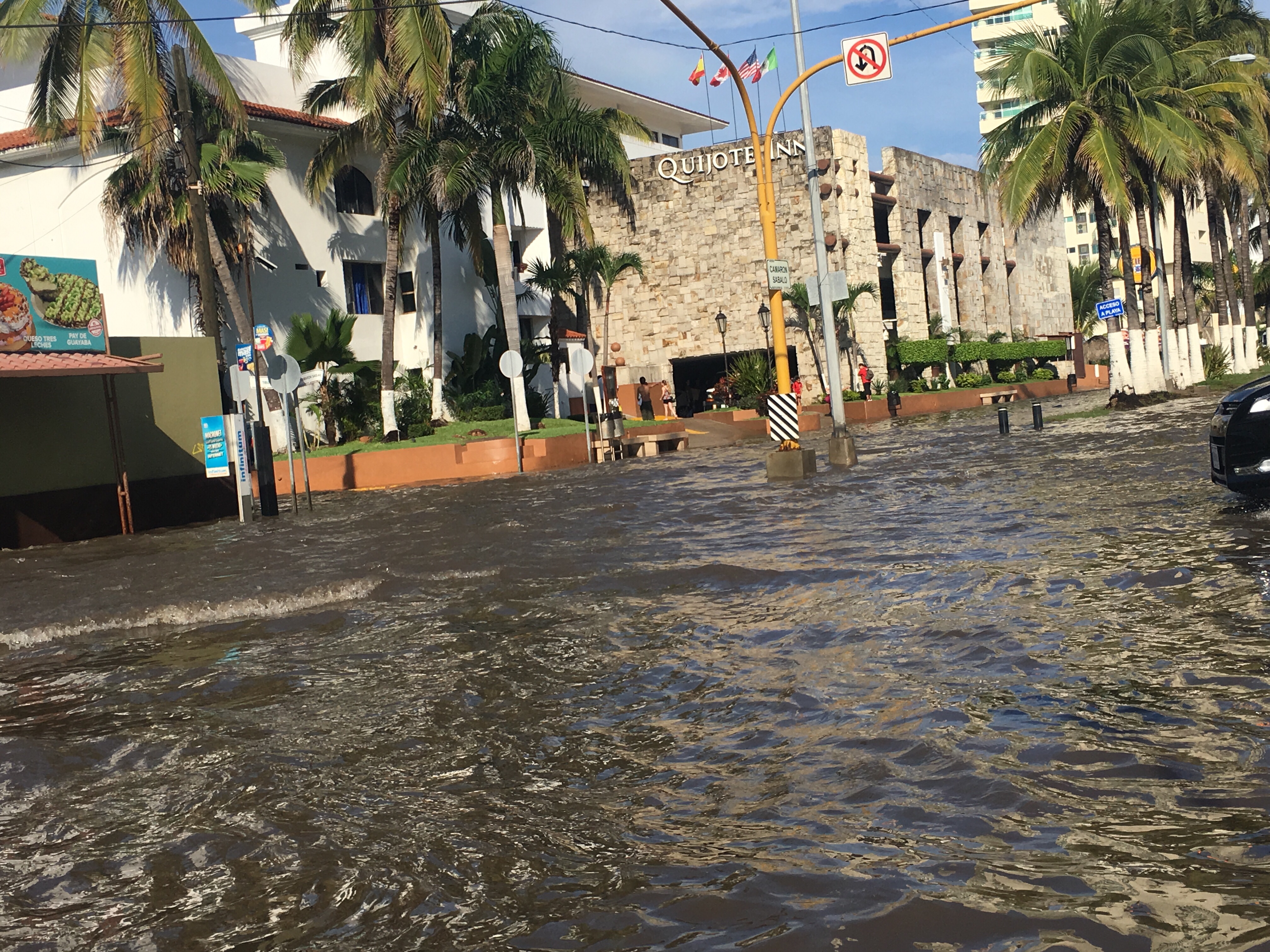 La precipitación se detuvo,el Sol salió y el agua bajó de nivel, solo en la zona hotelera siguieron los problemas de circulación por la inundación.