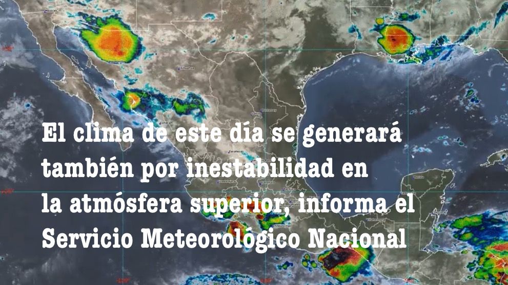 Finalmente, un sistema anticiclónico mantendrá el ambiente vespertino caluroso a muy caluroso en el noroeste, norte y noreste de la República Mexicana, con temperaturas máximas por arriba de los 45 °C en Baja California y Sonora.