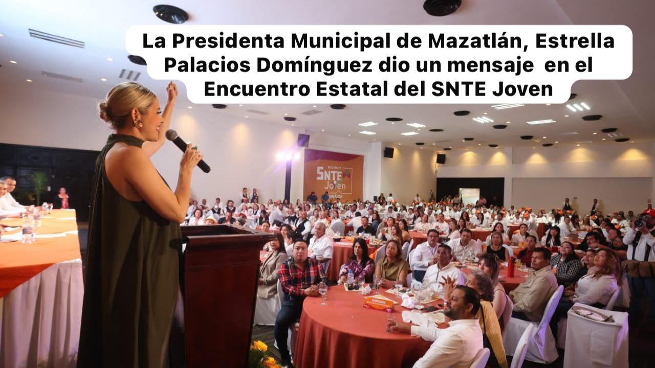 Mazatlán, Sin., 13 dic.2025.– En el marco del Encuentro Estatal del SNTE Joven, la Presidenta Municipal de Mazatlán, Estrella Palacios Domínguez, reafirmó el papel fundamental de la educación y los docentes en la construcción de un futuro próspero y sostenible.