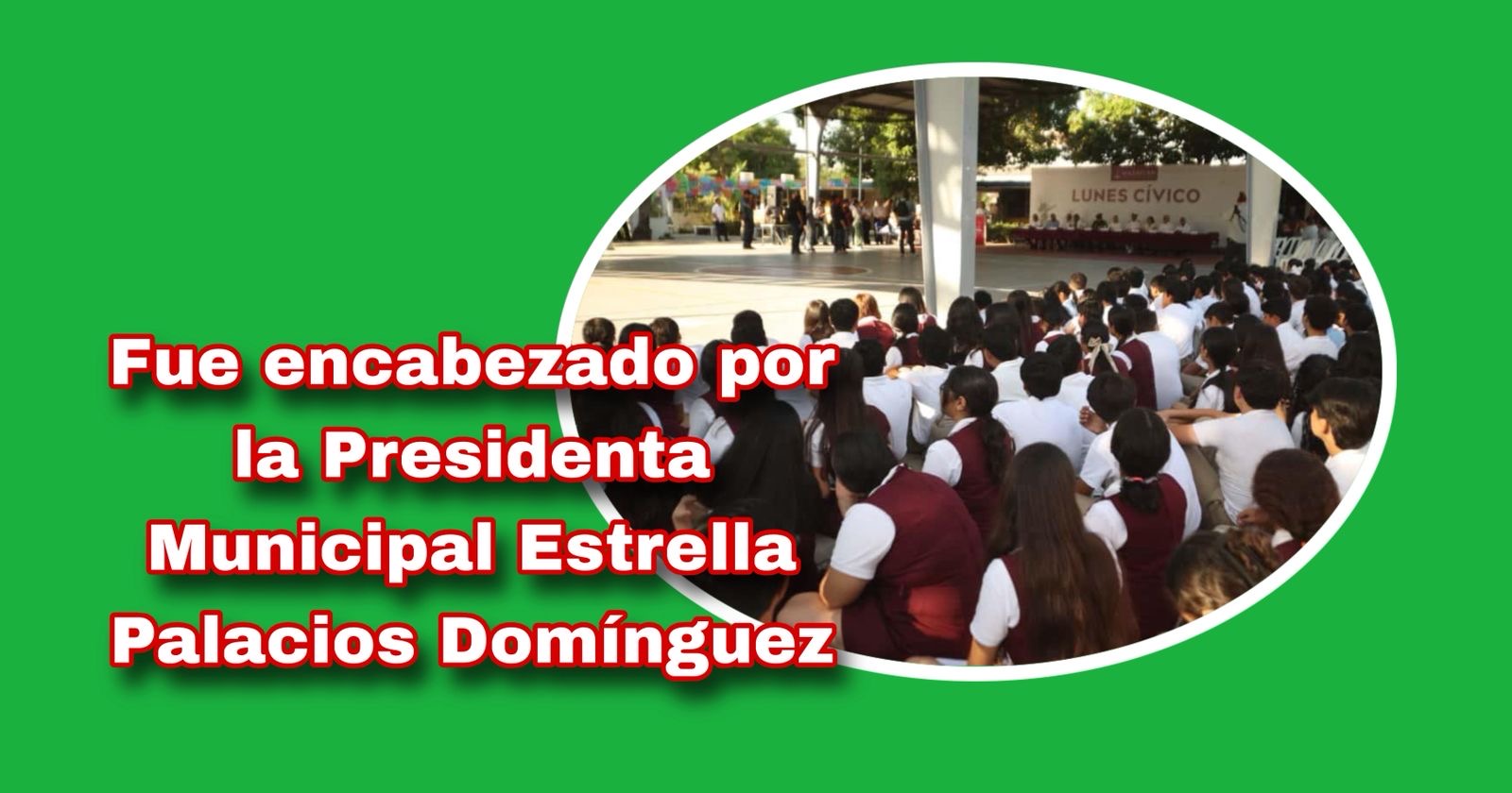 Mazatlán, Sin.,, 10 nov. 2025.- En el marco del 60 aniversario de la Escuela Secundaria General No. 1 Guillermo Prieto, ubicada en el fraccionamiento Casa Blanca, el Gobierno Municipal de Mazatlán, que encabeza la Presidenta Estrella Palacios Domínguez, encabezó el Lunes Cívico con la participación de la comunidad estudiantil, docentes y autoridades locales.