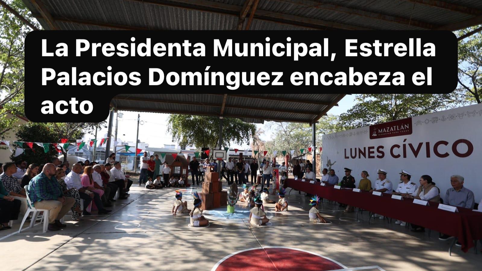 Mazatlán, Sin., 2 marzo 2026.– En el marco del Lunes Cívico organizado por el Gobierno de Mazatlán, la Presidenta Municipal, Estrella Palacios Domínguez, puso en marcha la construcción de la barda perimetral en el Jardín de Niños Agustín Yáñez, ubicado en el fraccionamiento Arboledas I, obra que contará con una inversión de 937 mil 530.99 pesos, la cual beneficiará directamente a la comunidad escolar del plantel.