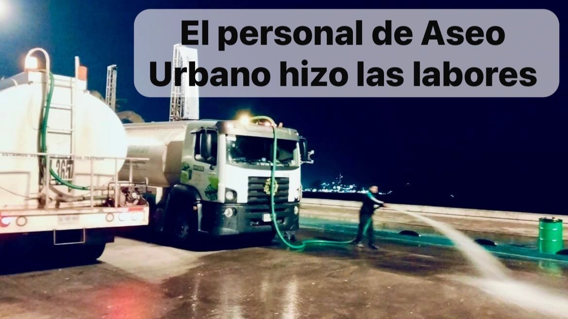 De manera complementaria, Parques y Jardines se sumó al operativo con cinco personas y el apoyo de dos pipas, realizando el lavado de áreas estratégicas para reforzar las condiciones de limpieza.