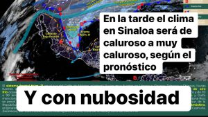 Pacífico Norte: Cielo medio nublado y sin probabilidad de lluvia en la región. Ambiente muy frío al amanecer en zonas altas de Sonora. Por la tarde, ambiente caluroso a muy caluroso en Sinaloa y ambiente cálido en Sonora. Viento del oeste y noroeste con rachas de 50 a 60 km/h en Sonora y costas de Sinaloa.