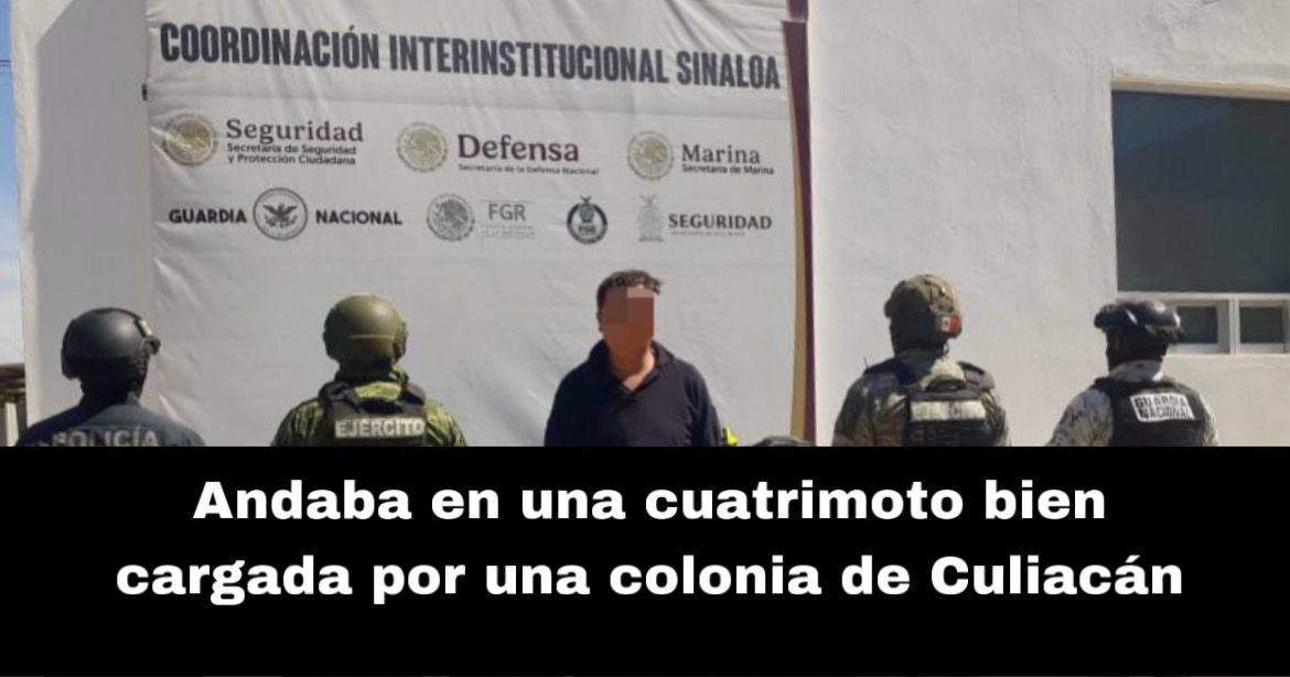 Culiacán, Sin., 15 feb. 2025.-En recorridos de prevención en el municipio de Culiacán, la Secretaría de la Defensa Nacional, con el apoyo y en coordinación con la Guardia Nacional, la Secretaría de Marina, la Fiscalía General de la República, la Fiscalía General del Estado y la Secretaría de Seguridad Pública de Sinaloa, aseguró a una persona, así como dos armas de fuego, un chaleco táctico, cargadores y una cuatrimoto.