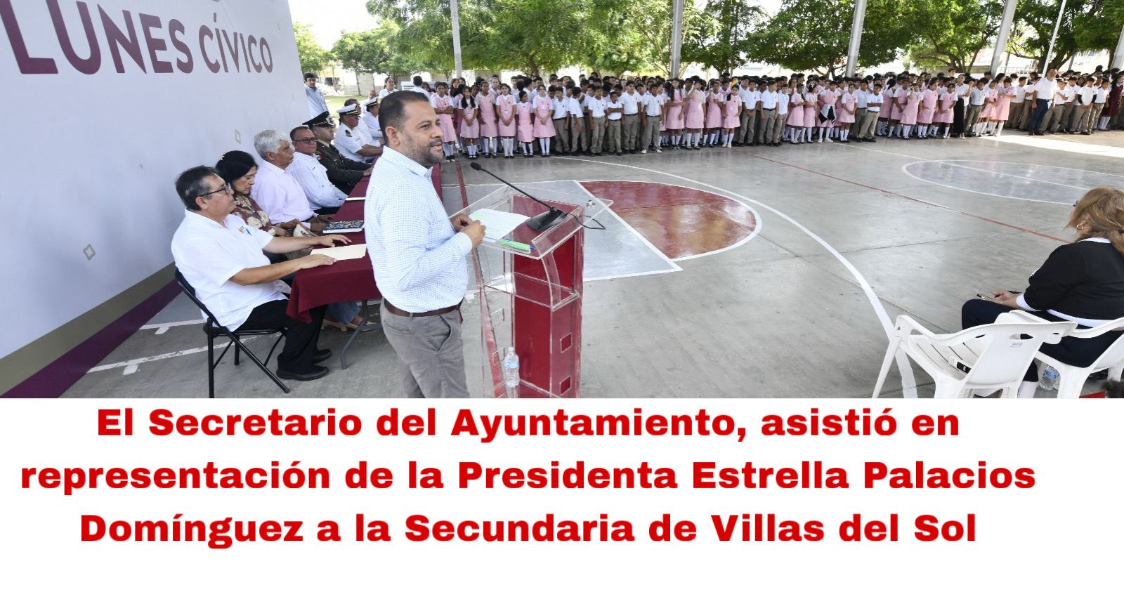 Mazatlán, Sin., 29 sept. 2025.– El Gobierno de Mazatlán impulsa entre los estudiantes de las diversas escuelas del municipio los valores a la enseña patria, a través de los Lunes Cívicos, enfatizó el Secretario del Ayuntamiento, Moisés Ríos Pérez, quien asistió en representación de la Presidenta Estrella Palacios Domínguez, a dicha ceremonia cívica realizada en la Escuela Secundaria Federal número 8 Bicentenario de la Independencia, en el fraccionamiento Villas del Sol.