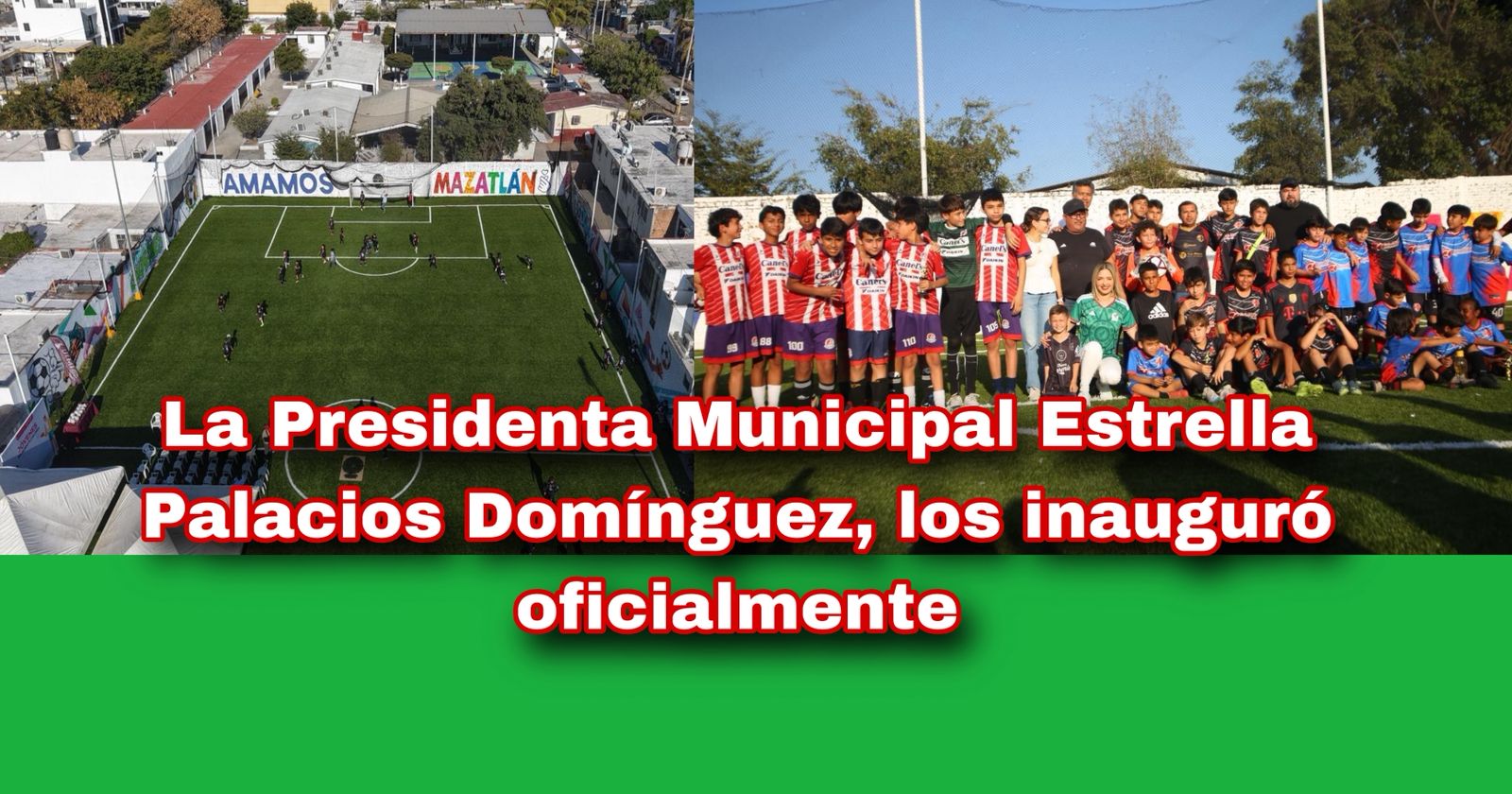 Mazatlán, Sin,, 26 marzo 2026.- Como parte de las acciones de atención a las causas y la reconstrucción del tejido social, la Presidenta Municipal, Estrella Palacios Domínguez, inauguró oficialmente los murales que embellecen la cancha de futbol de la colonia López Mateos, realizados dentro del programa “Jóvenes Pintando tu Colonia”.